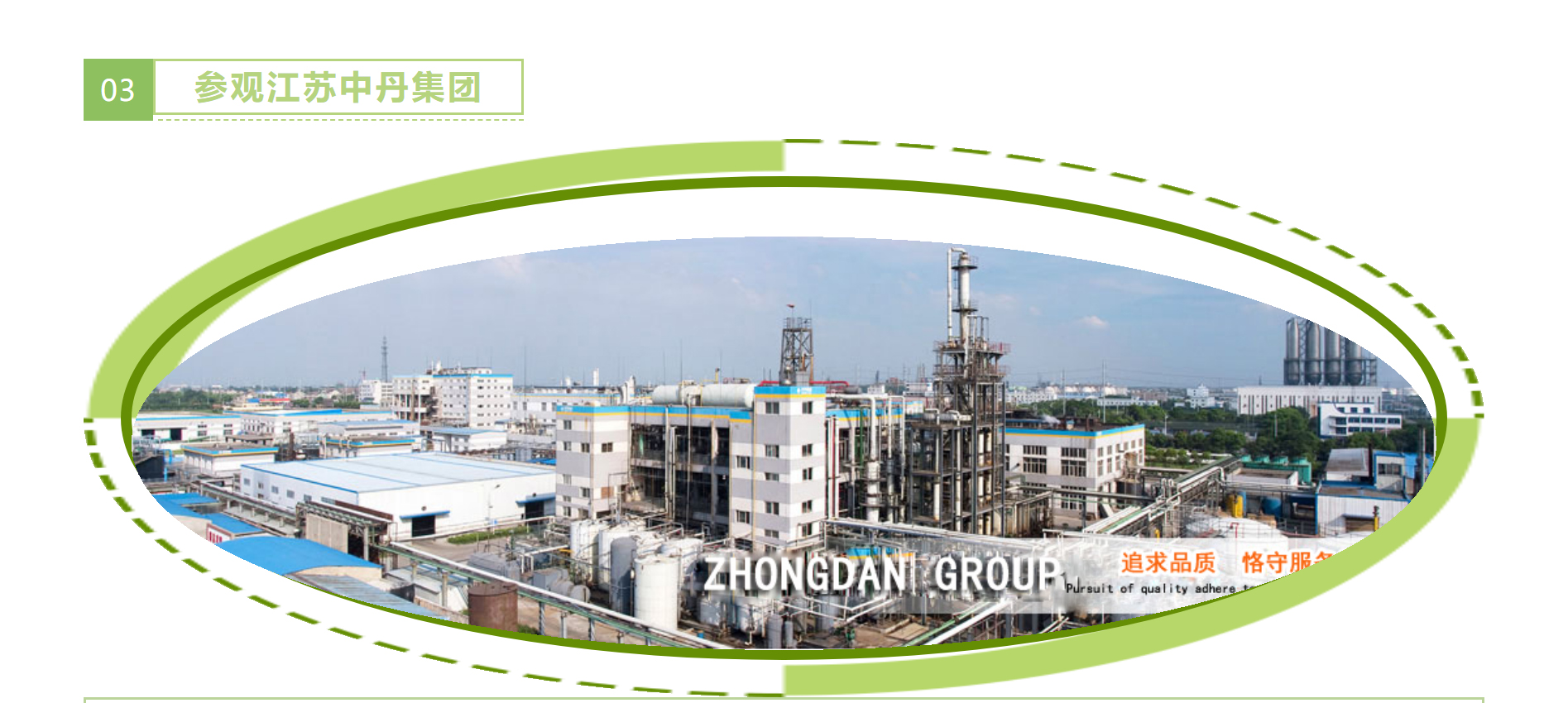 中丹集团主导产品的生产规模、 装置水平、出口创汇能力及市场占有率、经济效益等,均居全球同行业同类产品的第一名。集团65%以上的产品出口到世界30多个国家和地区,是全国百强化工企业、国内出口创汇先进企业、国家培植的出口创汇基地、江苏省出口骨干企业。